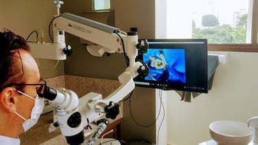 Tratamento de canal com Microscópio e Laser. Normalmente em sessão única.